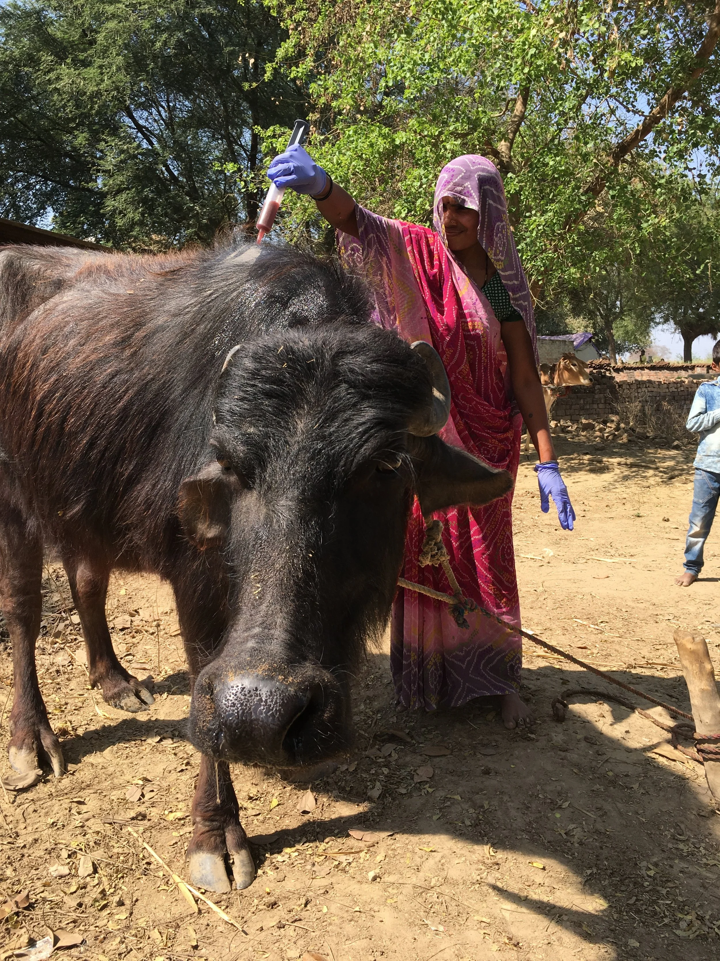 We saw this for ourselves. Many of the families' buffalo and cows were afraid of us strangers, and we could not approach to measure their girth and apply the parasite treatment. But they trusted Arshima to do all this.